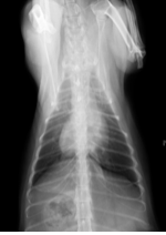 細胞診の検査結果において、胸腺腫が疑われました。腫瘍のサイズがかなり大きかったため、外科手術の前に減容積を目的としたステロイドの内服薬による治療を開始しました。
